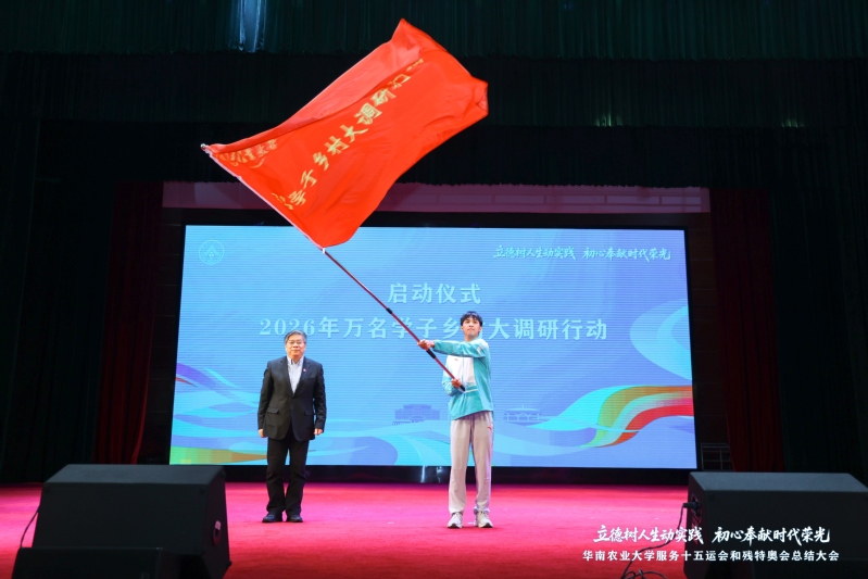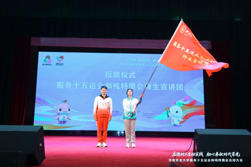 1月10日,华南农业大学在丁颖礼堂举行服务十五运会和残特奥会总结大会。大会全面总结了学校服务保障十五运会和残特奥会工作情况,表彰了一批在服务保障工作中表现突出的先进个人,并为寒假“万名学子乡村大调研行动”吹响集结号,勉励青年学子从服务赛事到建功田野,续写社会服务新篇章。