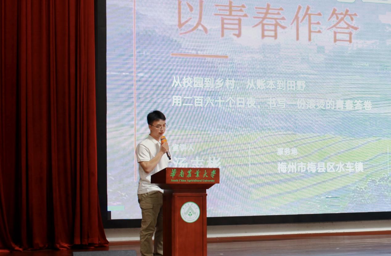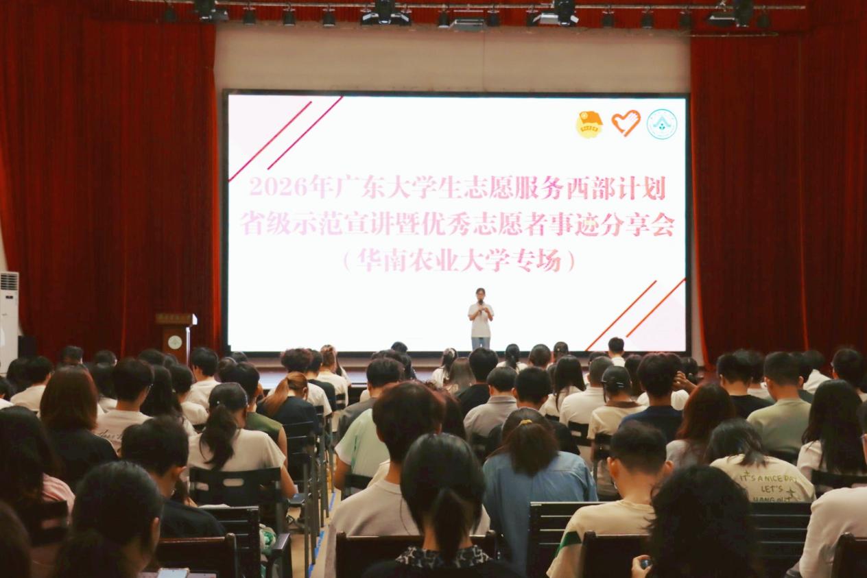 4月16日,2026年广东大学生志愿服务西部计划省级示范宣讲暨优秀志愿者事迹分享会(华南农业大学专场)在华山学生活动中心顺利举行。广东省青年志愿者行动指导中心老师、校团委有关负责老师、校青志负责人和285名应届毕业生代表一同参会。