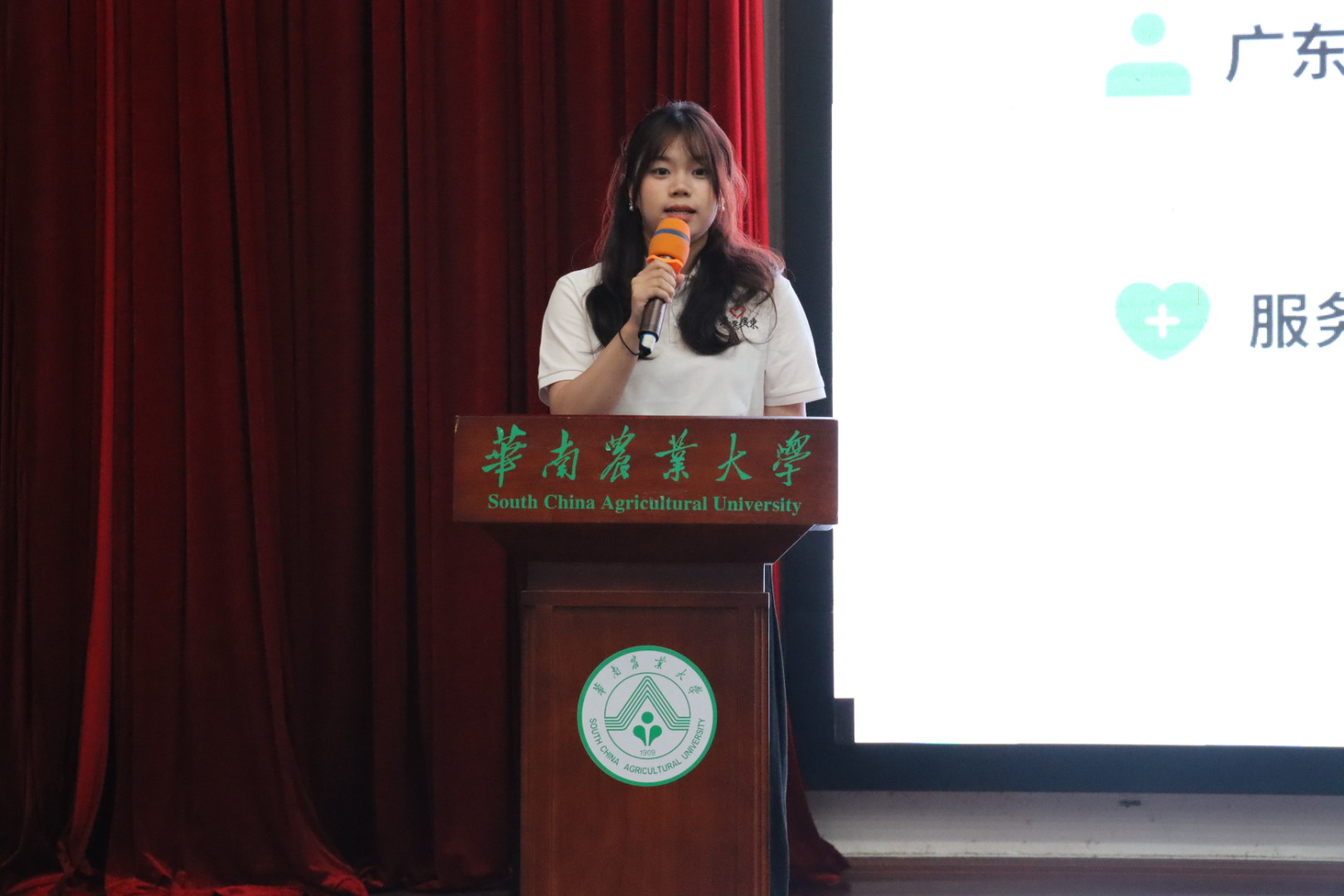 广东省青年志愿者行动指导中心老师为同学们详细介绍了广东大学生志愿服务西部计划和广东大学生志愿服务“百千万工程”专项行动的相关政策,鼓励同学们到西部去、到基层去、到祖国最需要的地方去。